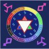 Cats of various colors perch on crescent moons, with sparkling stars in between. Invoke your cat-like nature!