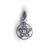 The pentacle is a schematic map of the cosmos.Its five points stand where the four elements of earth, water, fire, air, and the fifth element, consciousness.They also stand for the four directions, and the center place where you are.The pentacle is one of the oldest symbols in the western world.1″ diameter.