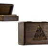 A wonderful, round topped, wooden box featuring a stylized Tree of Life carving covering the front and wrapping up over the top of the hinged lid. 7 x 5 x 4 1/2